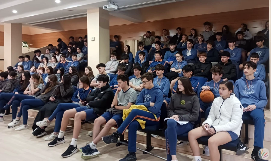 Charla educativa en el Colegio Calasancio de Madrid, Cristina Cuesta comparte su testimonio con alumnos de primero de Bachillerato. Proyecto Educar para la convivencia de la FVT.