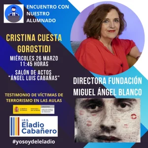 Charla educativa de Cristina Cuesta en el IES Eladio Cabañero, de Tomelloso, dentro del programa: Testimonio víctimas del terrorismo en primera persona, coordinado...