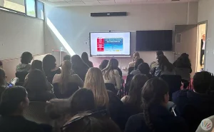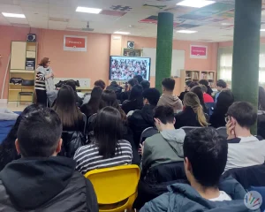 Charla educativa impartida por Cristina Cuesta a alumnos de 4º de la ESO del colegio San Agustín de Sevilla, dentro del proyecto “TESTIMONIO...